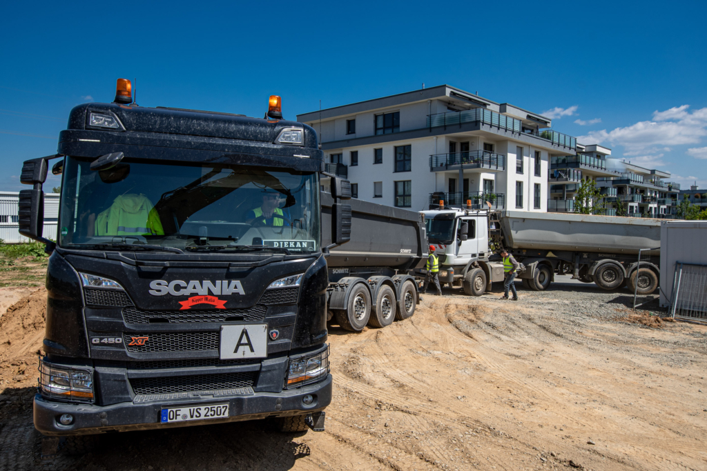 Mit unseren umfangreichen LKW-Dienstleistungen versorgen wir unsere Kunden mit Baustoffen. Wir liefern alles termingerecht und kurzfristig auf Ihre Baustelle. Auch holen wir Material vor Ort ab und bringen nicht mehr benötigte Stoffe auf die nächste Deponie. Hierfür stehen im Raum Rhein-Main 60 eigene Sattelzüge und 4-Achser sowie 95 Fachkräfte zur Verfügung, die schnelle und kompetente Leistungen gewährleisten.